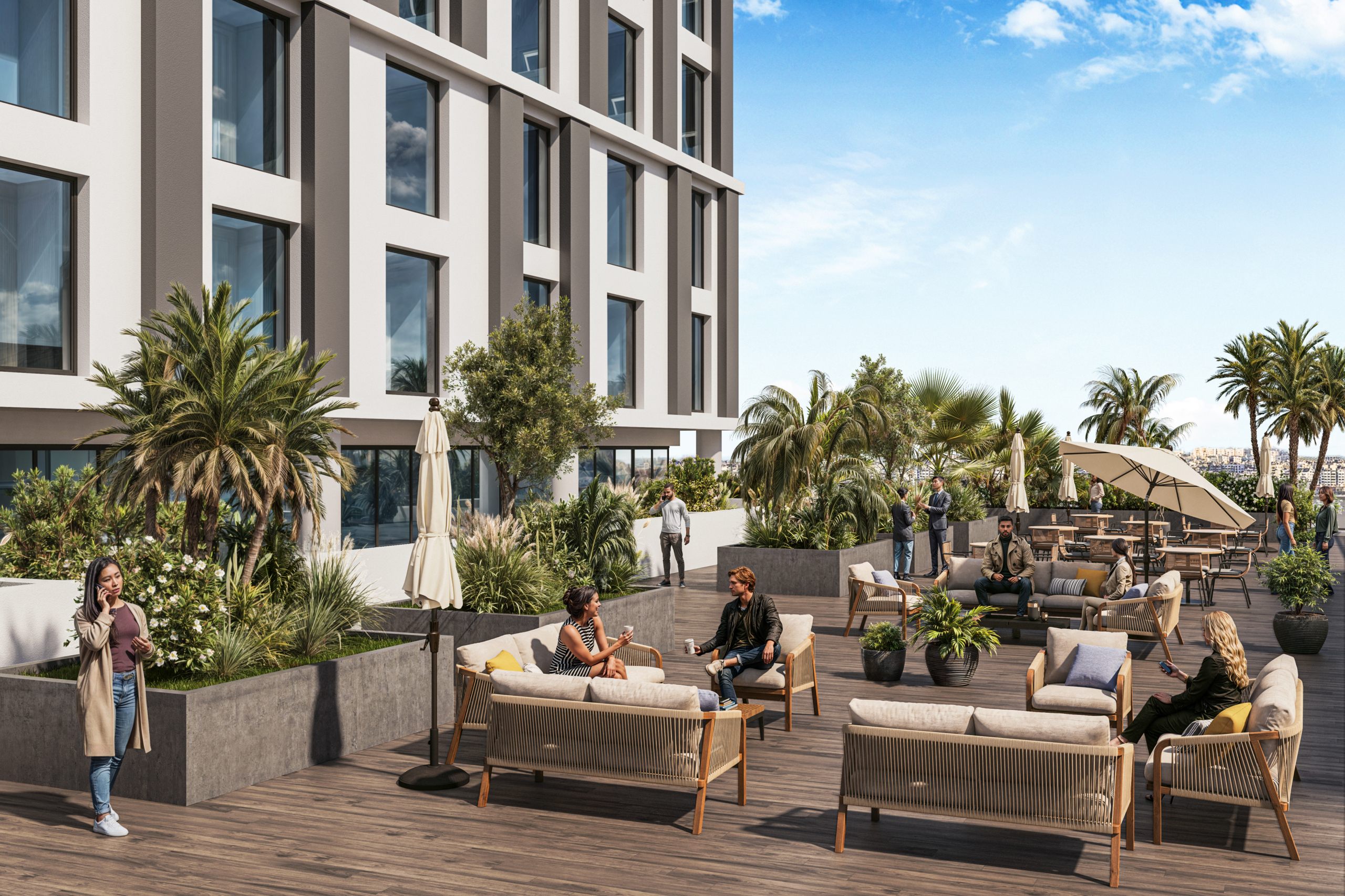 Au cœur du bâtiment, un jardin suspendu et une terrasse avec vue sur l’océan offrent une parenthèse de bien-être. Les plateaux, baignés de lumière, proposent des surfaces de 68 à 175 m², avec places de parking dédiées et performances éco-responsables conformes aux standards internationaux.